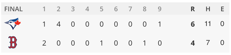 日本時間9月26日、地区優勝へのマジックナンバーを3としているレッドソックスはブルージェイズと対戦。デイゲームで地区2位のヤンキースが勝利したため、ブルージェイズに勝って自力でマジックを減らしたいところだったが、先発のドリュー・ポメランツが3回途中5失点でノックアウト。マジックを減らすことはできず、ヤンキースとの差は4ゲームに縮まった。