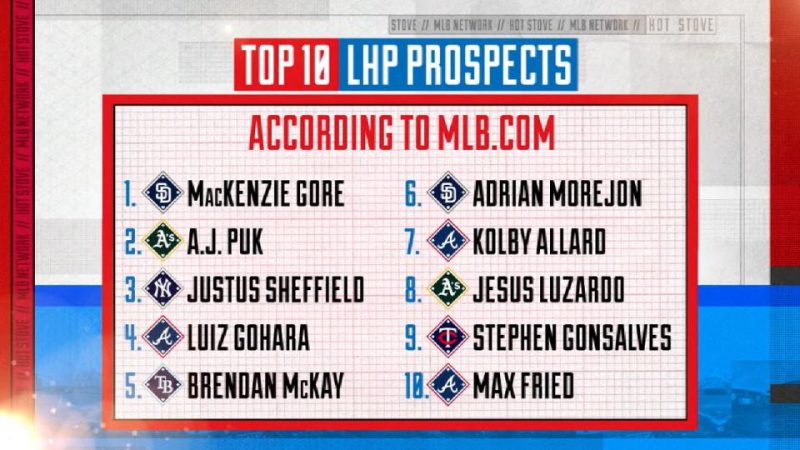 MLB公式サイトでは日本時間1月17日からポジション別プロスペクト・ランキングTOP10の発表が始まり、同18日に左腕部門のTOP10が発表された。1位はパドレスのマッケンジー・ゴア。パドレスから2人、アスレチックスから2人、そしてブレーブスからは3人がランクインしている。