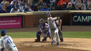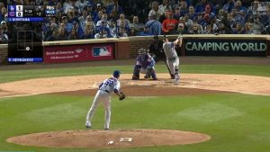 ドジャースとカブスによるリーグ優勝決定シリーズ(NLCS)第5戦。カブスは4回表までに0対9と大量リードを許してしまい、敗戦濃厚となってしまった。しかし、チームの主砲の1人であるクリス・ブライアントが意地の一発を放った。