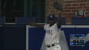 日本時間8月30日のジャイアンツ戦で4回裏に5号同点ソロを放ったジャバリ・ブラッシュ(パドレス)が、ライトの守備でも素晴らしいプレイを見せてくれた。