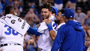 ア・リーグの熾烈なワイルドカード争いに参戦しているロイヤルズ。日本時間8月24日のロッキーズ戦は常に追う展開を強いられる苦しい試合となったが、エリック・ホズマーが土壇場の一振りで試合をひっくり返した。
