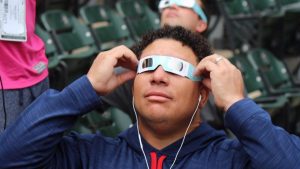 日本時間8月22日、アメリカでは99年ぶりに皆既日食が観測された。メジャーリーガーたちも試合開始前の練習中などに観測用のメガネを使い、およそ1世紀ぶりの皆既日食をチェックしていた。