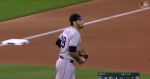 アレナードが自慢の強肩で先頭打者を刺す