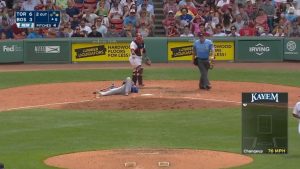 日本時間7月21日に行われたブルージェイズ対レッドソックスの一戦。5回表のライアン・ゴインズの打席で「珍しい」というよりは「不運な」内野ゴロが成立した。