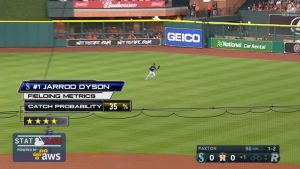 平凡なプレイがファインプレイに見えることがあれば、ナイスプレイが平凡なプレイに見えることもある。日本時間7月20日のアストロズ戦で、俊足好守のジャロッド・ダイソン(マリナーズ)が「四つ星」の難しいプレイを楽々とやってのけた。