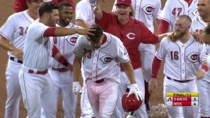 両者一歩も譲らないまま延長戦に突入した日本時間7月20日のレッズ対ダイヤモンドバックスの一戦。最後はアダム・デュバルがキャリア初のサヨナラタイムリーを放ち、チームの連敗を5でストップさせた。