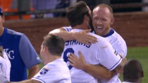 前夜に39℃近い高熱があったというケルビン・ヘレーラが9回表に逆転ツーランを被弾。しかし、ロイヤルズは勝利を諦めず、その裏に劇的な逆転劇を演じてみせた。