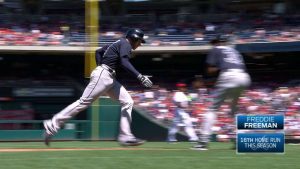 故障離脱時点で打率.341、14本塁打の好成績をマークしていたフレディ・フリーマン(ブレーブス)。戦列復帰後はチーム事情に合わせて三塁と一塁を兼任しながら、離脱前同様の強打でチームを牽引している。