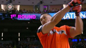 史上3人目のホームラン・ダービー連覇を目指したジャンカルロ・スタントン(マーリンズ)。惜しくもファースト・ラウンド敗退となったが、特大の一発で本拠地マイアミのファンを沸かせてくれた。