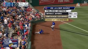 日本時間6月27日のナショナルズ戦で上原浩治を助ける見事なスライディングキャッチを見せたハビアー・バイエズ(カブス)。この美技によりStatcast導入後の新記録が生まれていた!