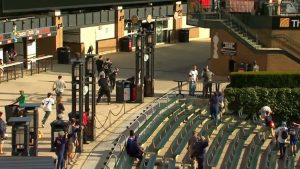 今季オープンしたブレーブスの新球場、サンストラス・パーク。この球場の外野フェンス際を駆け抜ける謎の全身タイツ男が新球場の名物となりつつある。