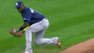 昨日トレードでレイズに加入したばかりのアデイニー・エチャバリアが故障者リストから戦列に復帰し、新天地で初出場。自慢の好守をアピールした。