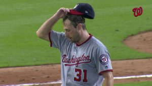 6試合連続2桁奪三振を記録し、7回までノーヒッターを継続した今日のマックス・シャーザー(ナショナルズ)。しかし、ノーヒッター挑戦は意外な形で幕を閉じた。