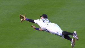 2回表二死満塁。一打同点の場面でトレバー・ストーリー(ロッキーズ)が見事なファインプレイを見せた。