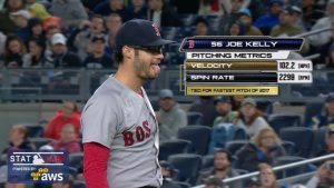 先日のニュース記事で「2017年の最速王」の1人として紹介したジョー・ケリー(レッドソックス)が日本時間6月7日のヤンキース戦で3番手として登板し、アーロン・ジャッジに対して今季メジャー最速タイとなる102.2マイル(約164.5km/h)の速球を投じた。