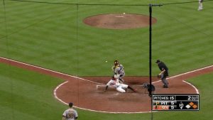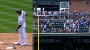 5回裏、インディアンスの2番手ニック・グッディと対戦したカルロス・ゴンザレス(ロッキーズ)はインコースへのスライダーを完璧に捉え、右翼ポール際への大ファウル。