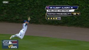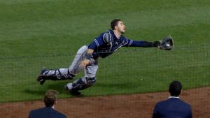 捕手が輝くとき! フライをヘッジスがダイビングキャッチ