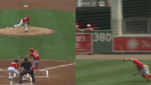 イエリッチが放った三遊間の打球をダイビングで捕球し綺麗な一塁送球