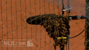 試合中に大量の蜂が乱入して一時中断に