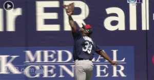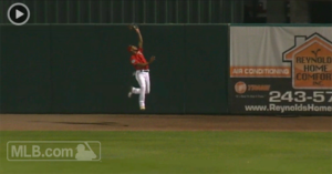 バクストンがフェンスに直撃しながらもボールを捕球
