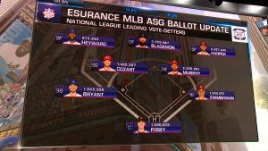 日本時間6月20日、第88回オールスター・ゲームのファン投票第4回中間発表(ナ・リーグ)が行われ、各ポジションでトップ(外野手は3位まで)に変動はなかった。しかし、外野手3位をはじめとして各ポジションで熾烈な争いが続いている。